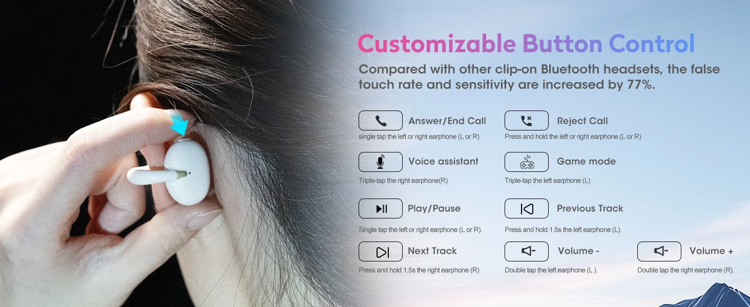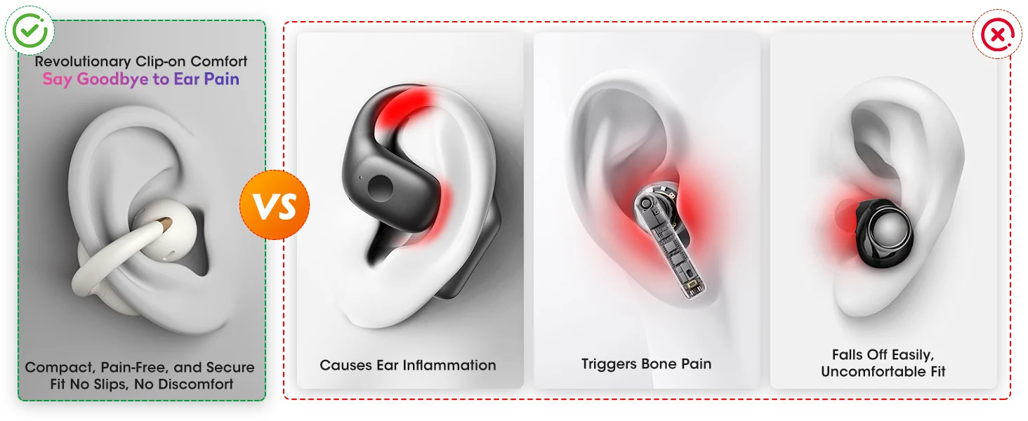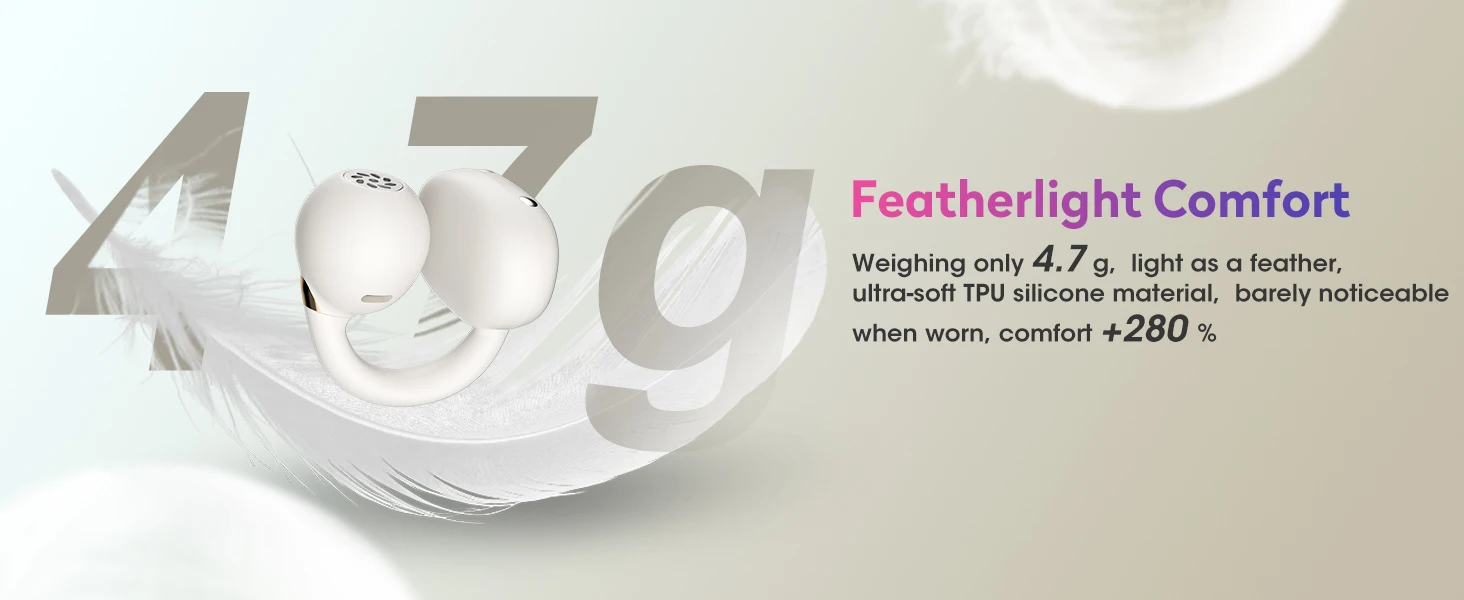 1、Feather-Light Clip Design (No Ear Fatigue!)