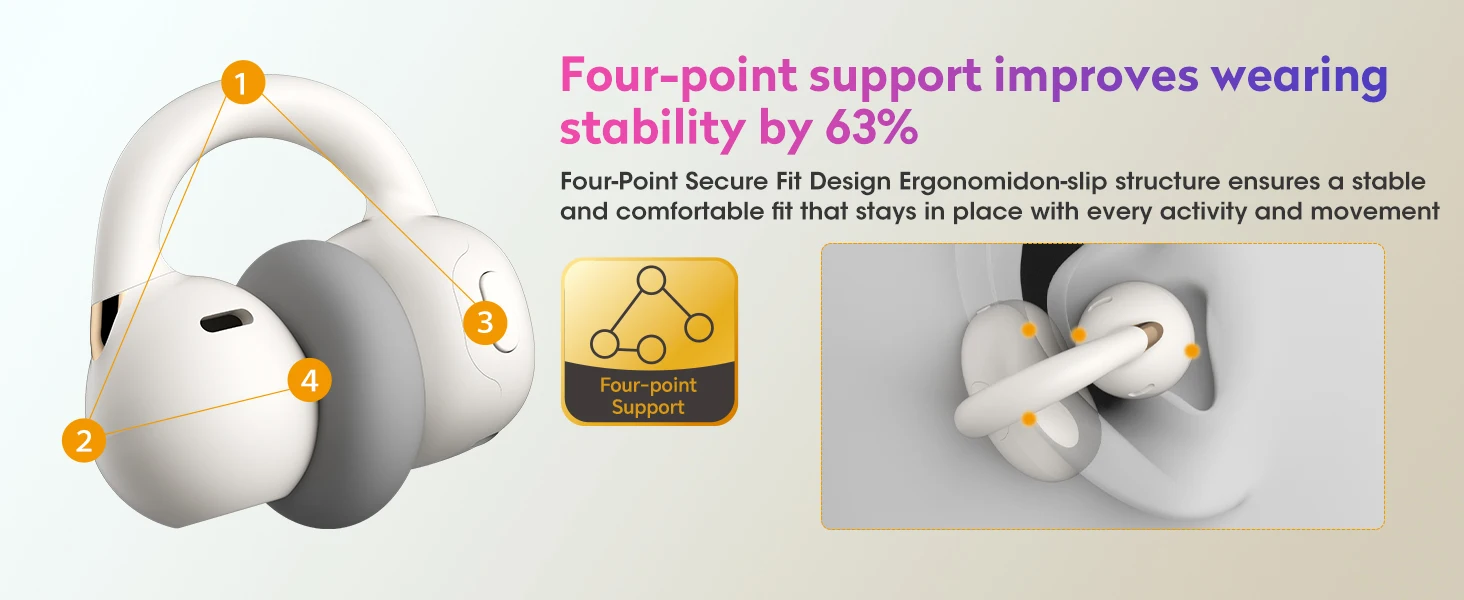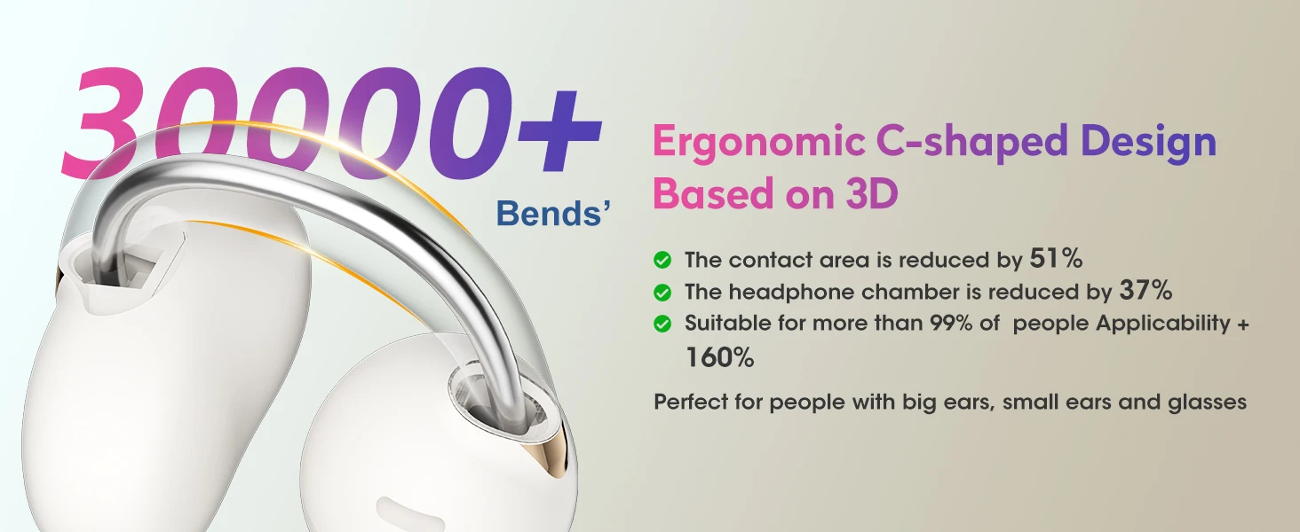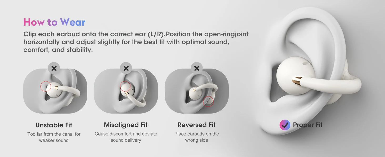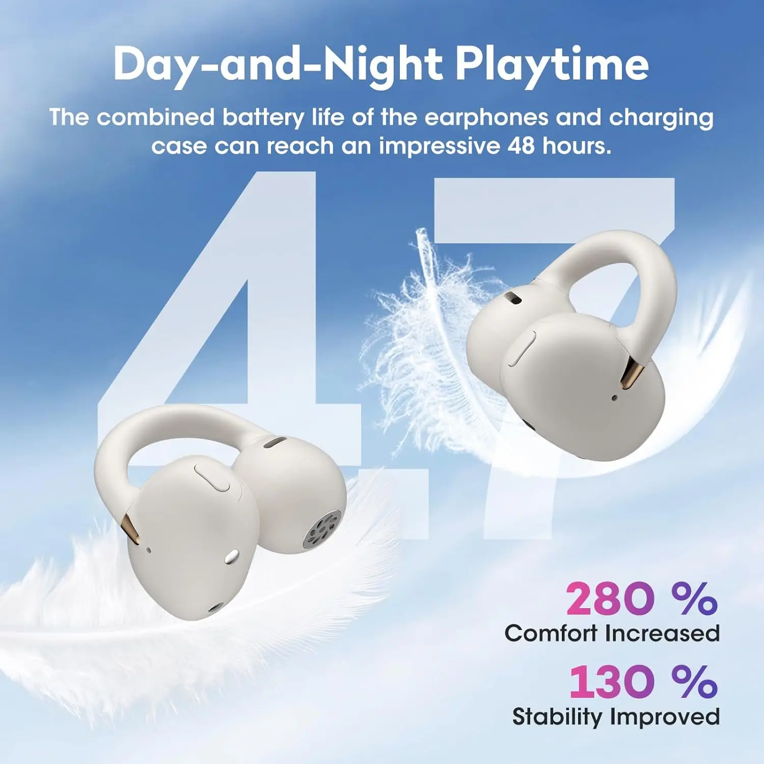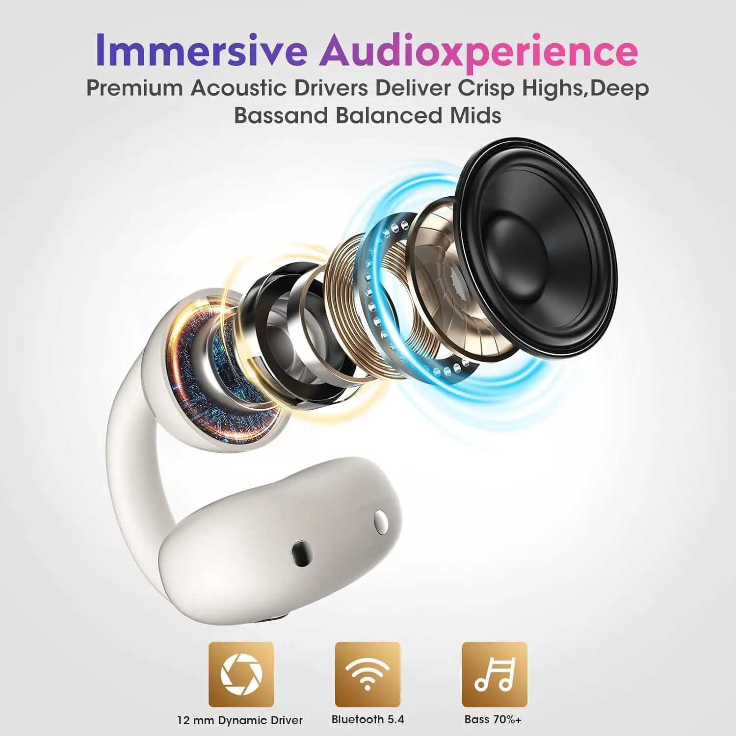 Ear clip ear buds delivers exceptional sound quality with 12mm dual drivers and a dynamic EQ, offering pure, transparent audio and crystal-clear vocals.