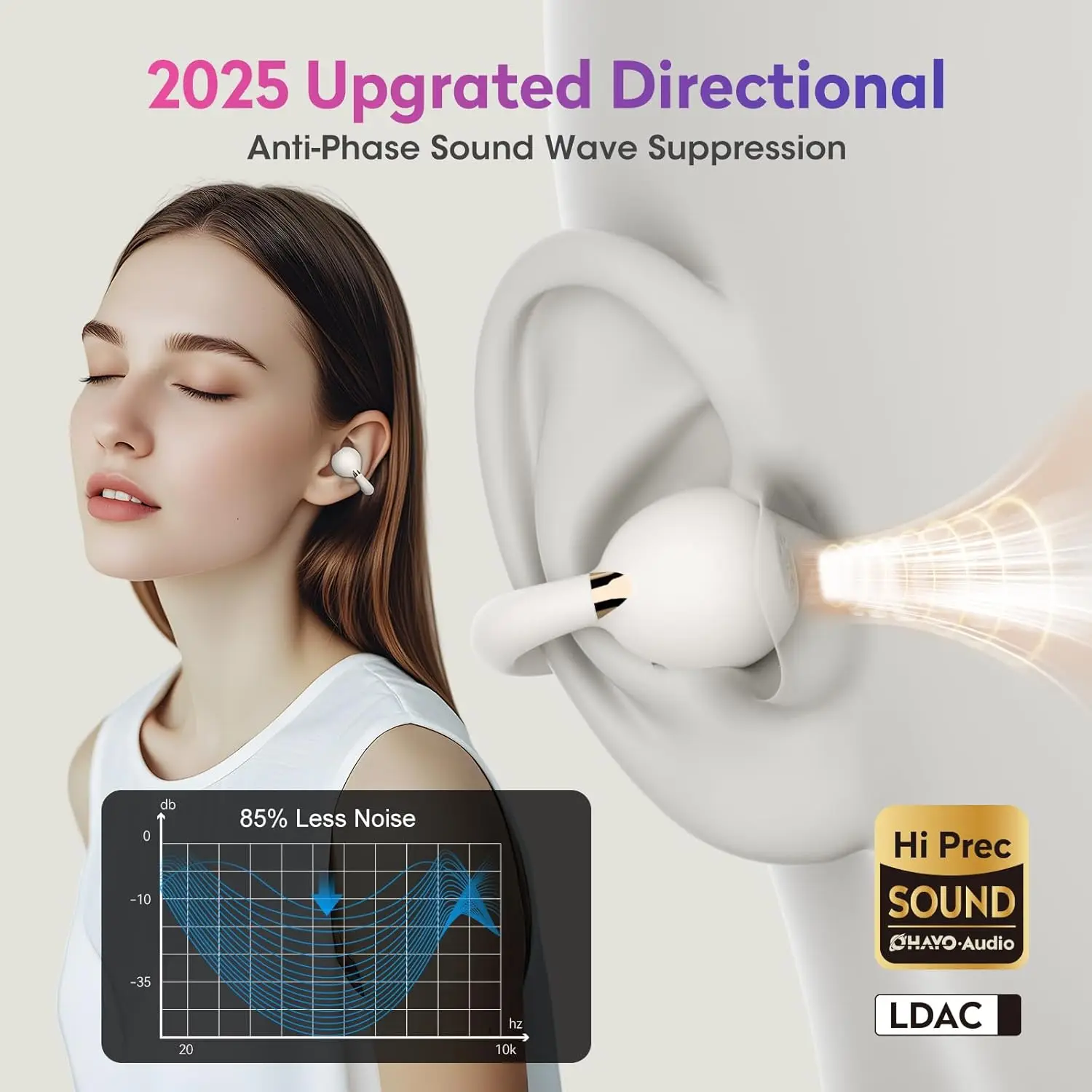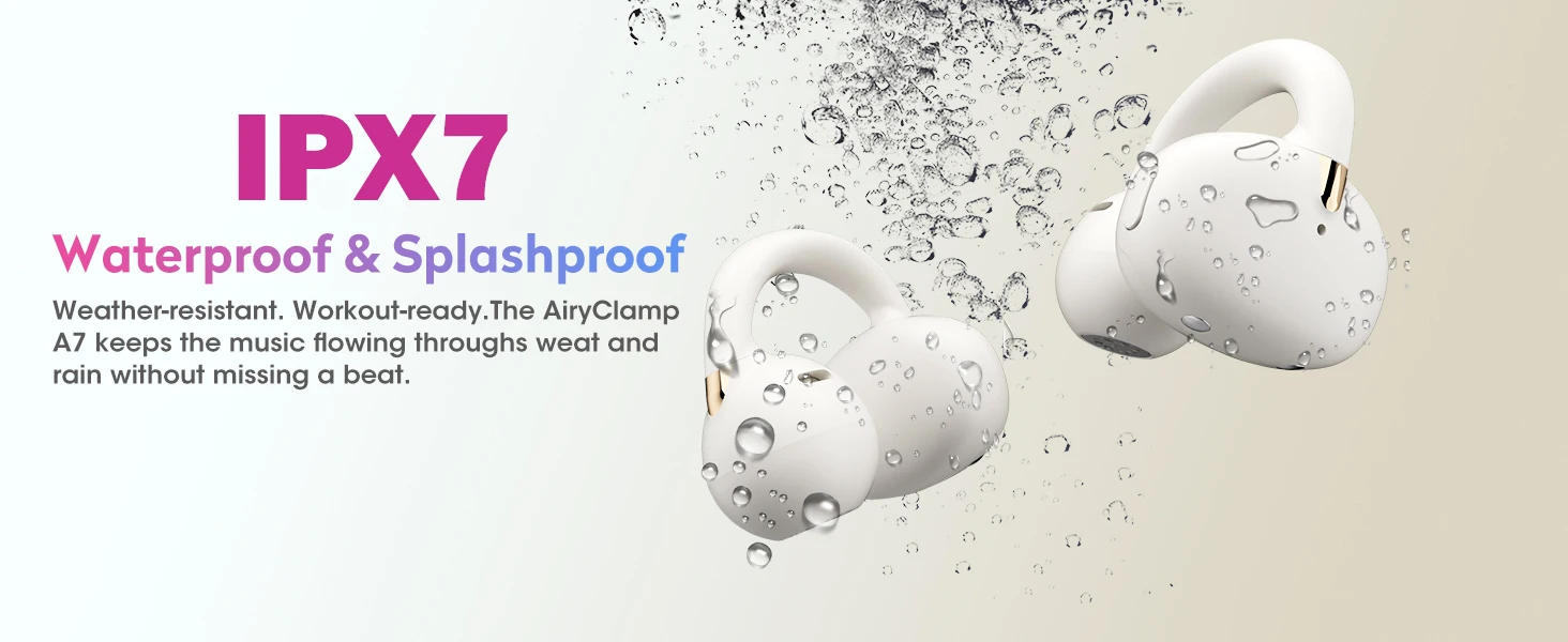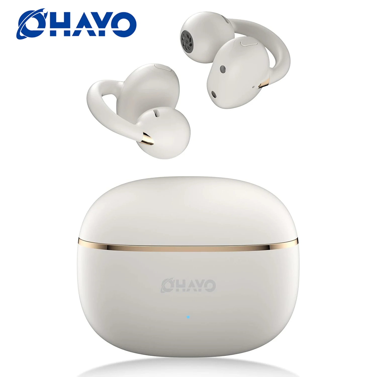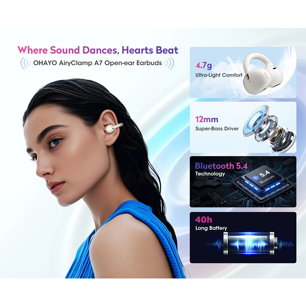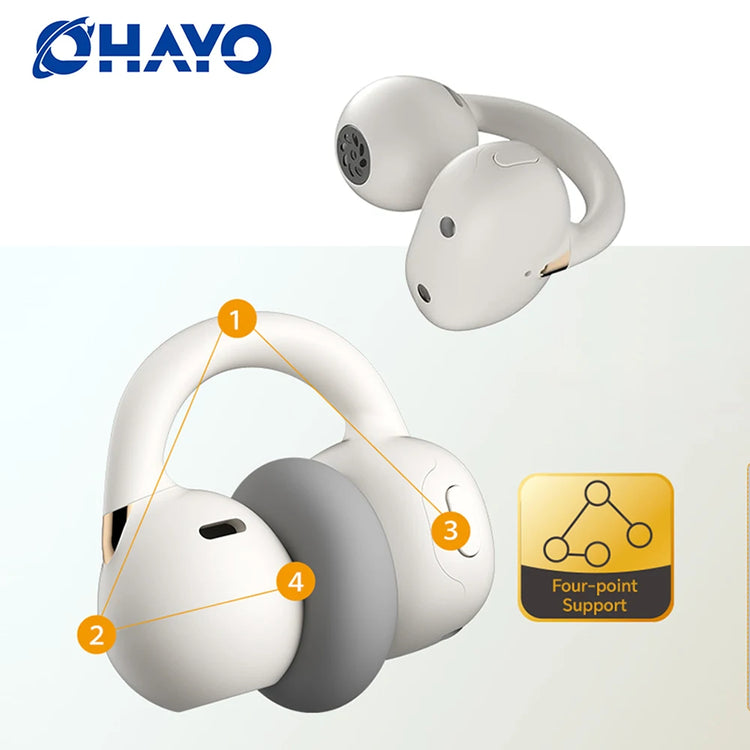 Ohayo A7 Open-Ear Earbuds Clip-On Wireless Headphone with Hi-Res Audio Powerful Bass AI Clear Calls Open-Ring Design Waterproof