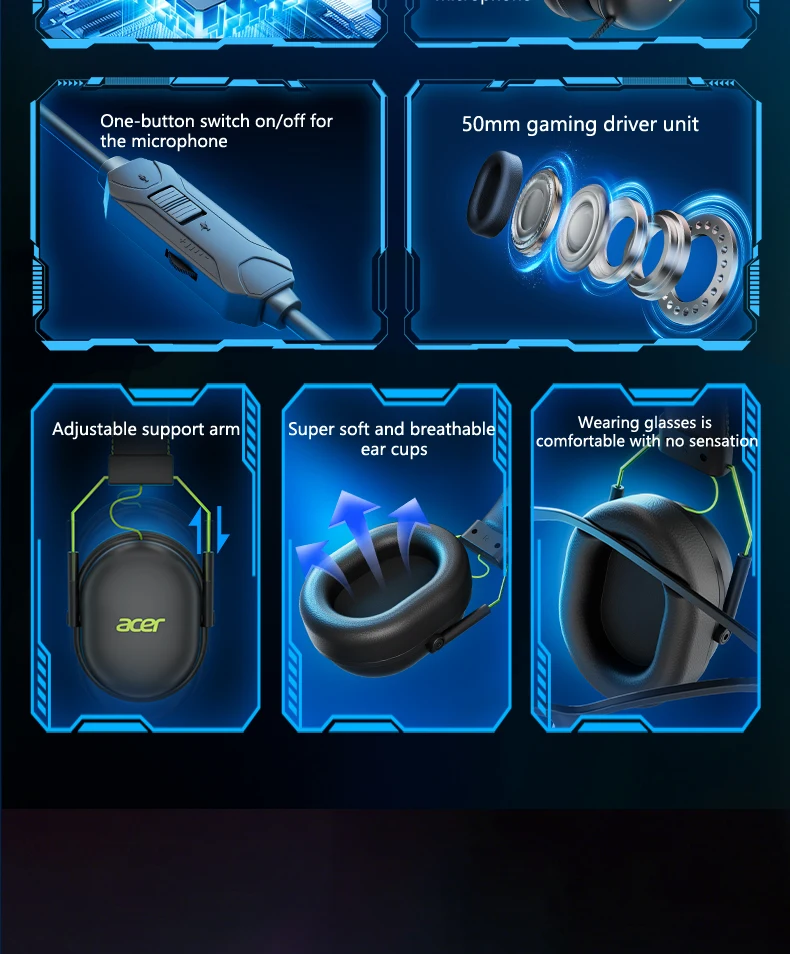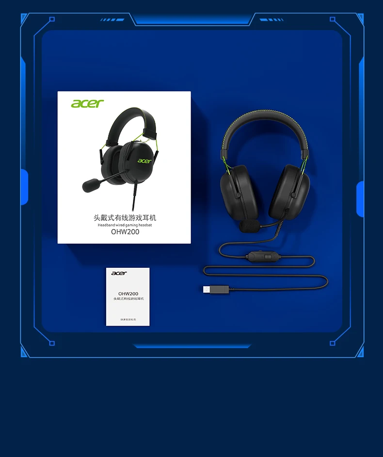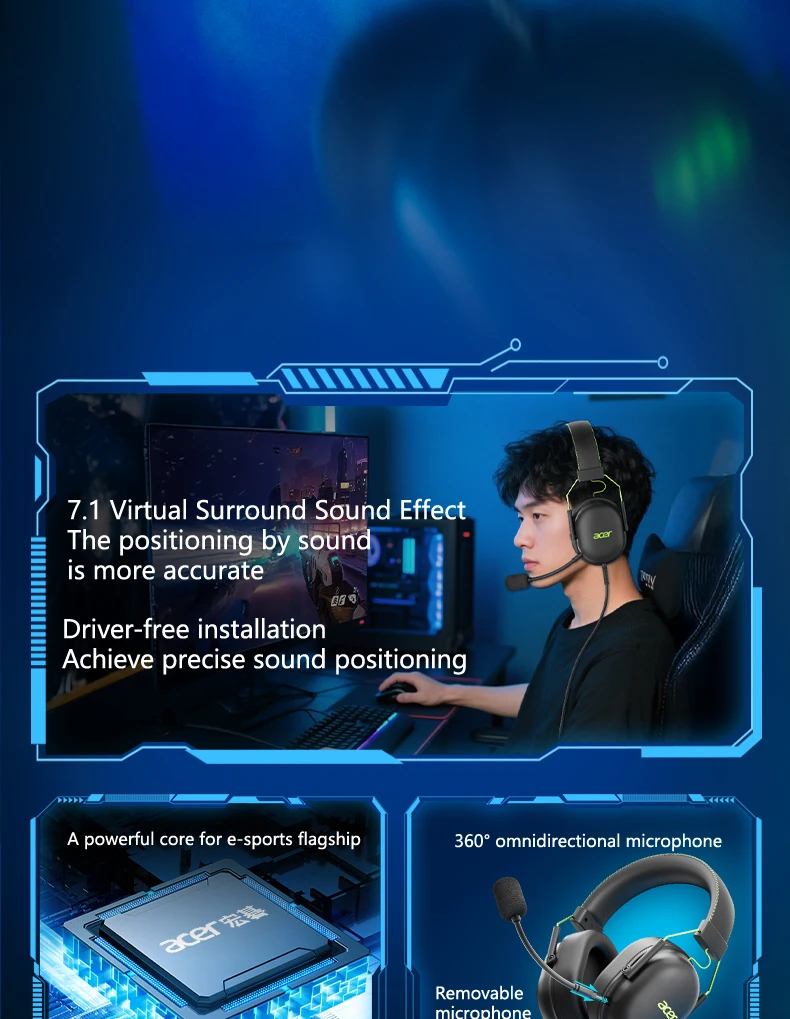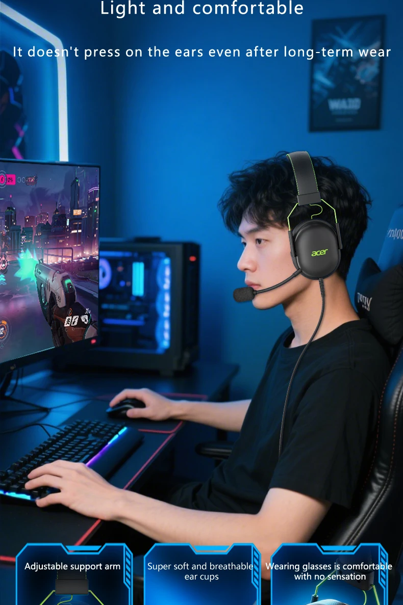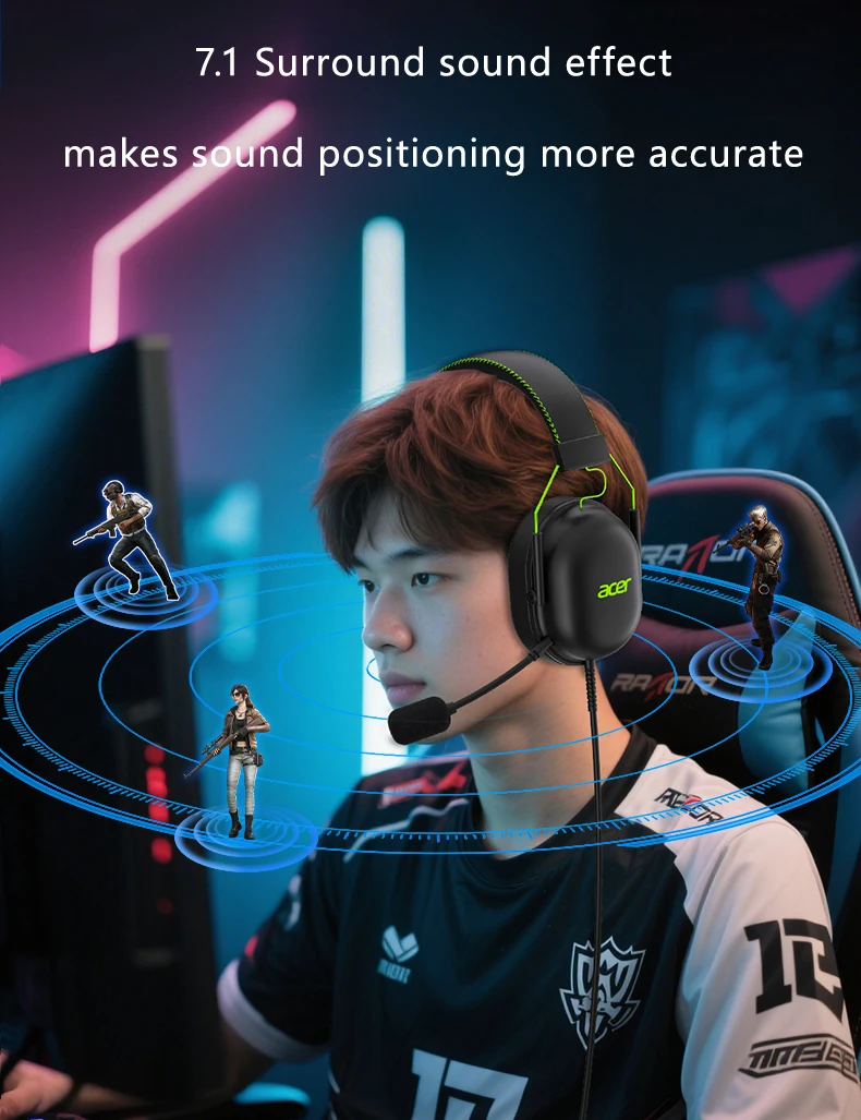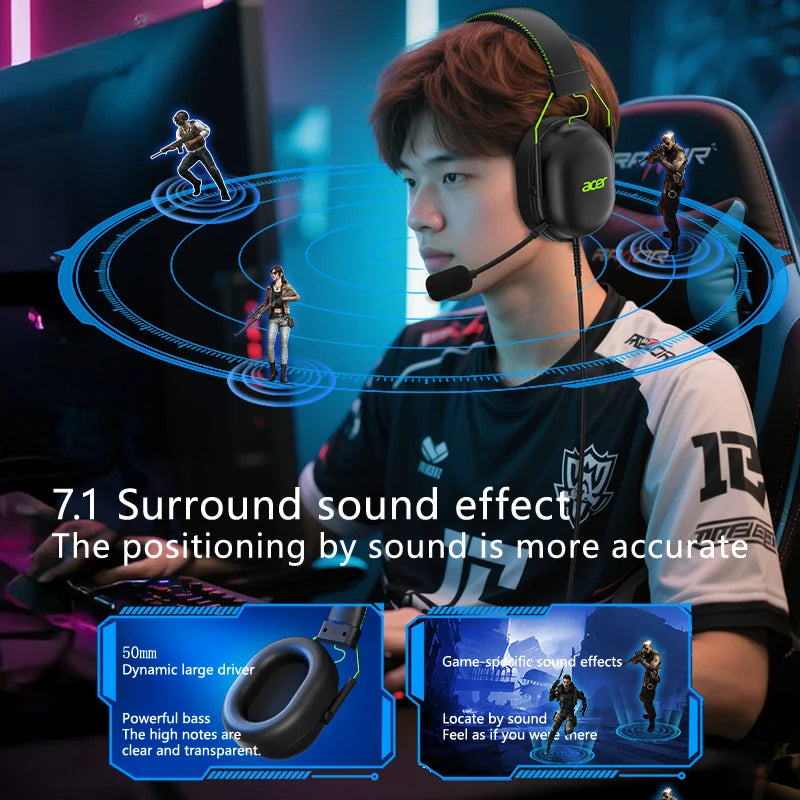2025 Acer Headphones OHW200 7.1 Surround Sound Wired USB Gaming Headset with Mic Noise Cancelling- Gamer for PC, Laptop