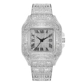 Classic Luxury Business Men's Steel Strap Square Roman Scale Rhinestone Quartz Watch Lesiure Male Wristwatch Relogio Masculino