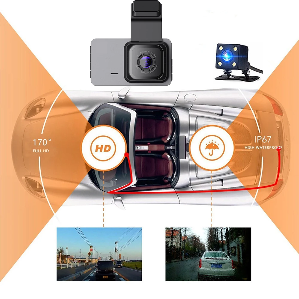 WiFi Car DVR 3.0 Inches Screen Full HD 1080P Dual Lens Rear View Dash Cam Vehicle Camera Video Recorder Parking Monitor Auto Motion Detector Car Camcorder GPS Tracker