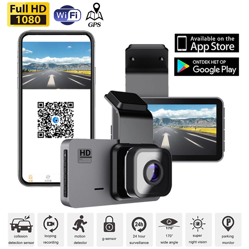 Dash Cam WiFi GPS Car DVR 1080P HD Vehicle Camera Dual Lens Drive Video Recorder Dashcam Parking Monitor Black Box Night Vision