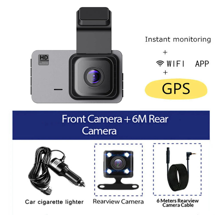 WiFi Car DVR 3.0 Inches Screen Full HD 1080P Dual Lens Rear View Dash Cam Vehicle Camera Video Recorder Parking Monitor Auto Motion Detector Car Camcorder GPS Tracker