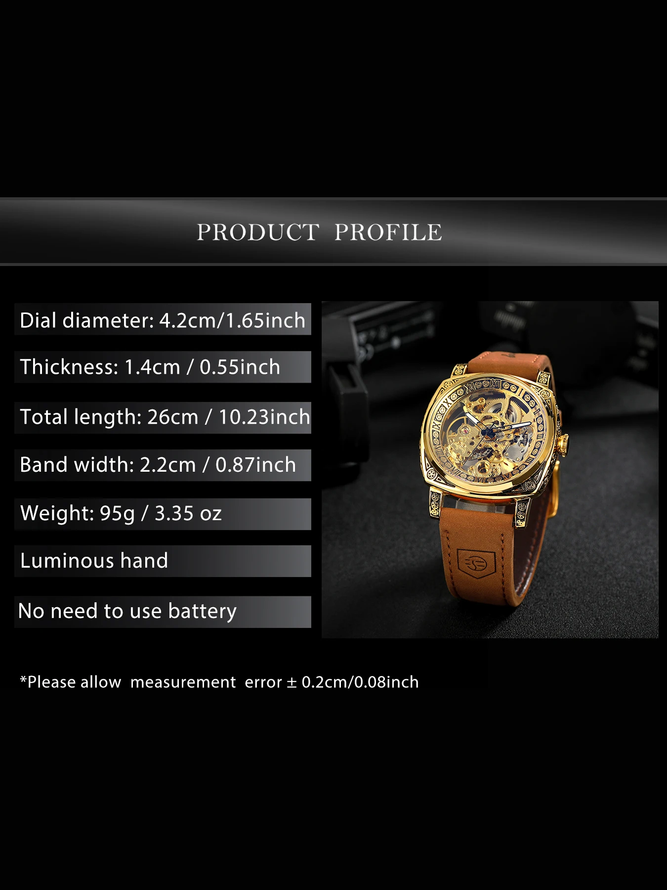 Movement: Automatic Self-Wind Mechanical(No battery needed)