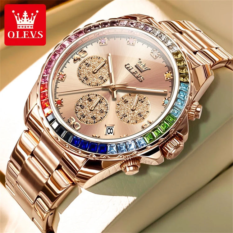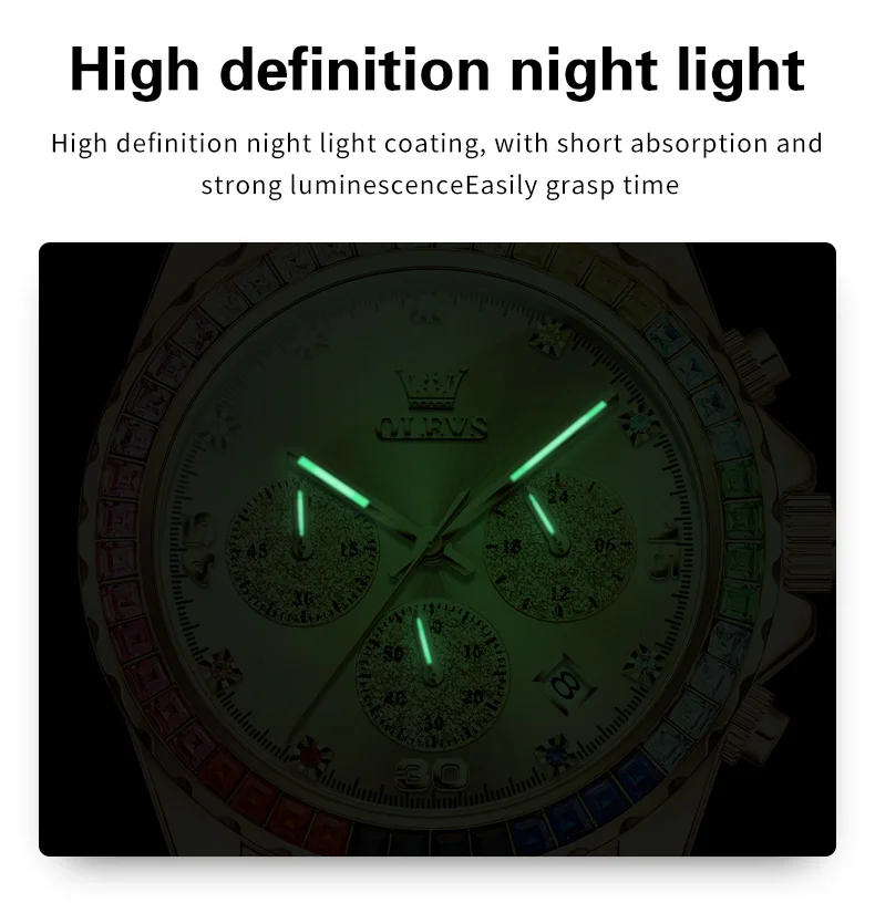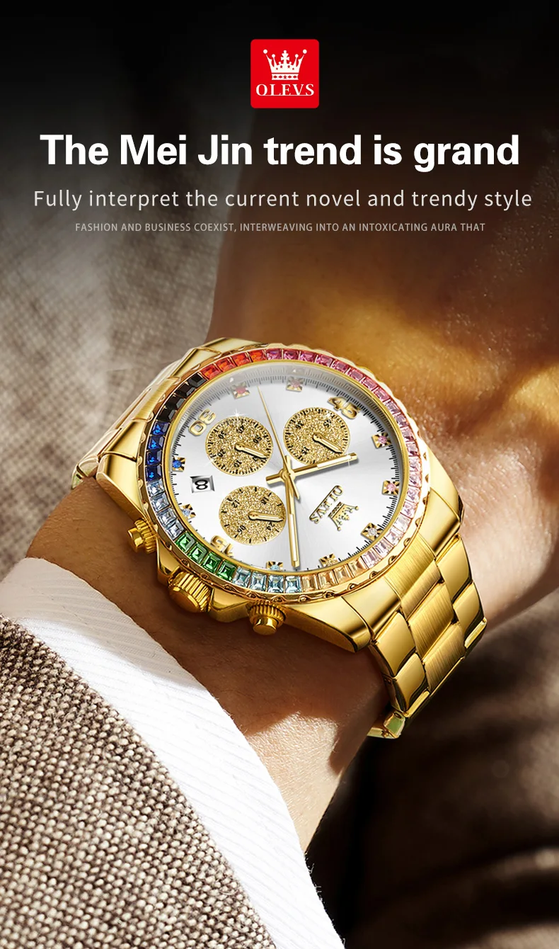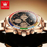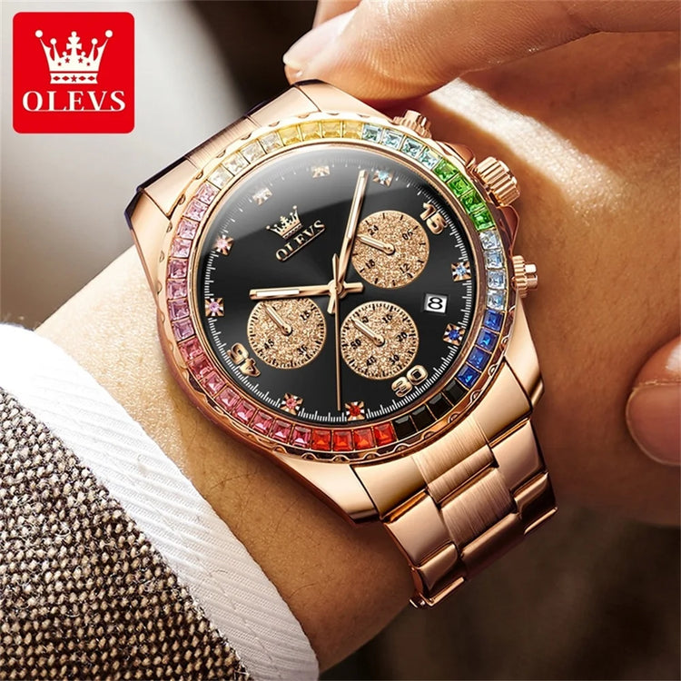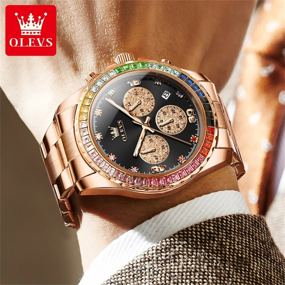 OLEVS 2939 Men Watch Fashion Luxury Rainbow Diamond bezel Quartz Watch Waterproof Date Chronograph Sport Men Watch Reloj Hombre