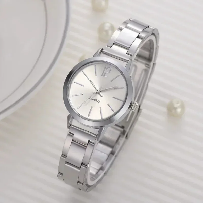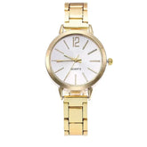 Relógio de pulso de quartzo redondo simples para mulheres, moda inoxidável, pulseira de ouro, relógios femininos, luxo,