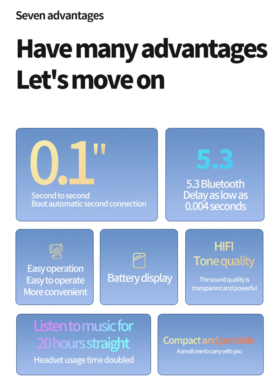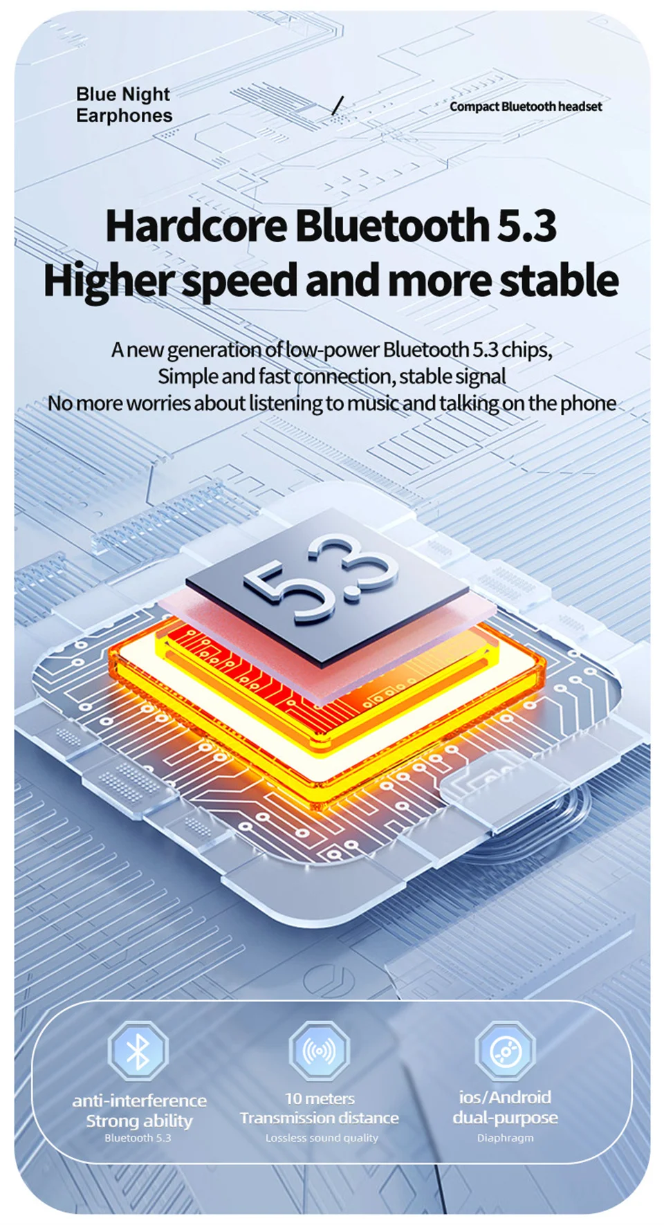Using the newly upgraded 5.3 high-version Bluetooth chip, it has higher compatibility and faster and more stable data transmission.